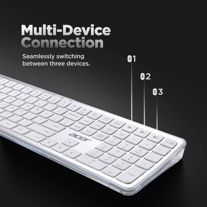 | Product Features | Ergonomic Curved Design, Multi-Device Connectivity, Transparent Base, Rechargeable Battery, Quiet Typing |