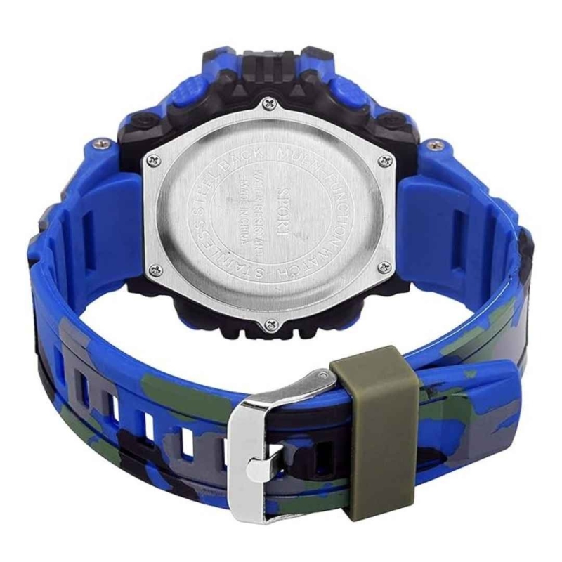 Acnos Digital Sport Watch combines rugged style with functional features like alarm, stopwatch, and multi-time zone tracking. Its robust build and sporty design make it perfect for outdoor enthusiasts and fitness lovers. Designed for comfort and durability with a polyurethane strap and a bold black rectangular dial.