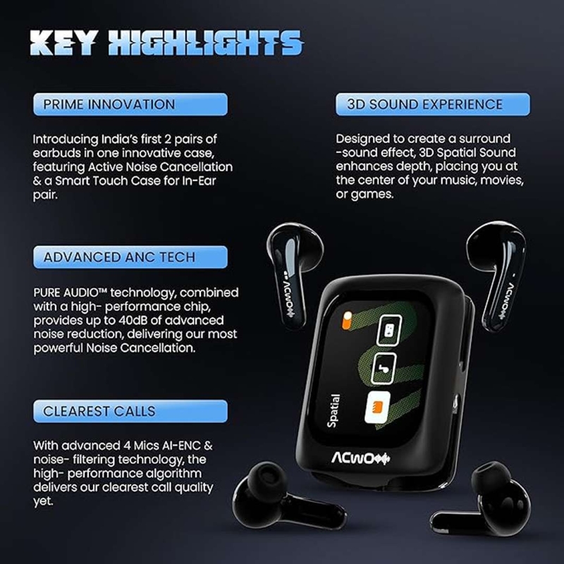 earbuds. Designed with a smart touch display, powerful 40dB Active Noise