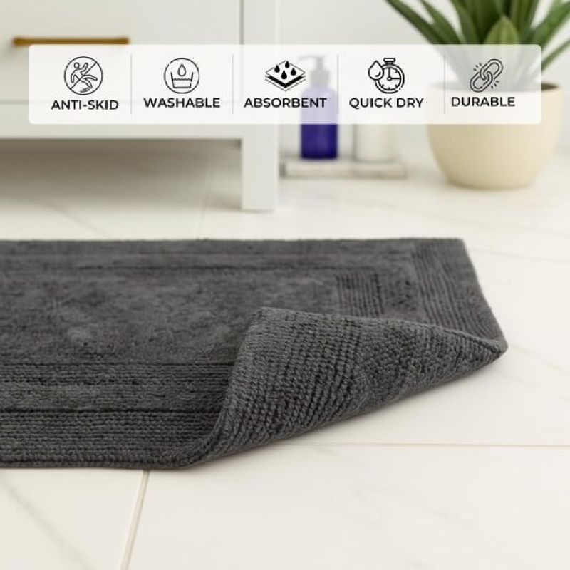 The AKIKO HOME Tufted Bathmat offers luxurious comfort with its ultra-soft high-pile cotton fibers and anti-slip backing. Designed for superior absorbency, quick drying, and long-lasting durability, this bathmat ensures a safe, plush, and eco-friendly experience after every bath or shower. Machine washable and easy to maintain, it is a stylish and practical addition to any modern bathroom.