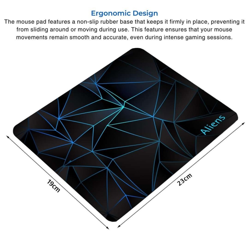 The Aliens Gaming Mouse Pad features an ultra-smooth, water-repellent surface for precise and fluid mouse control. Built with a non-slip rubber base, durable construction, and an elegant space-themed illustration, it delivers stable performance and stylish appeal for gaming, home, or office use.