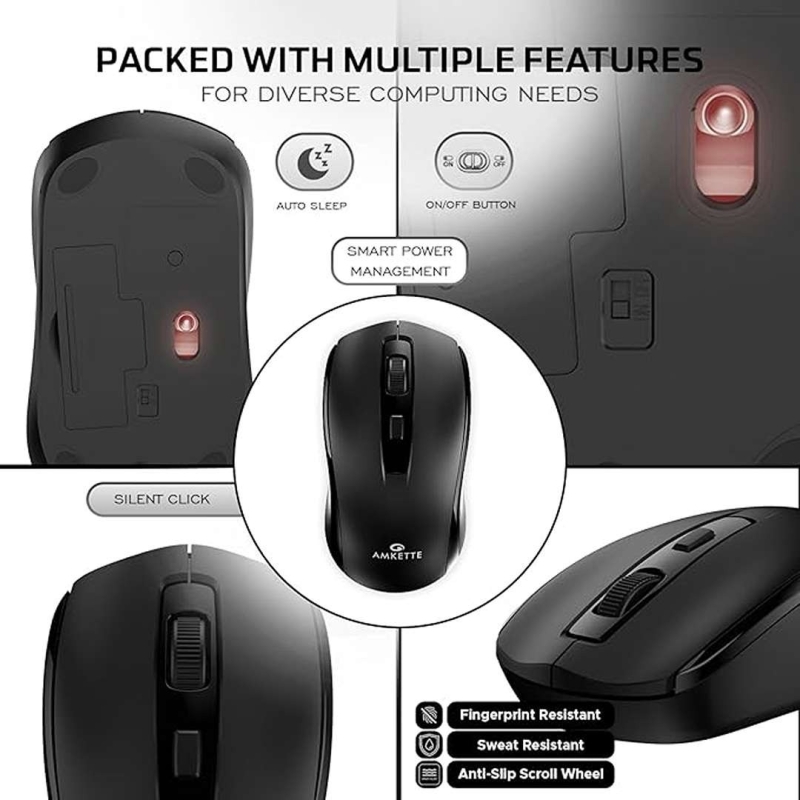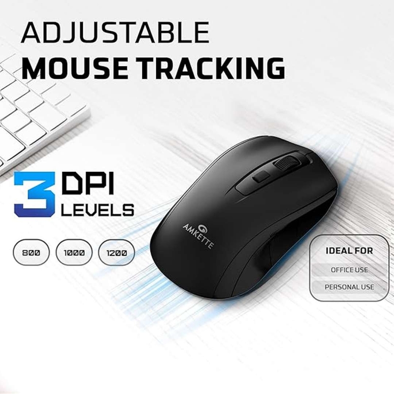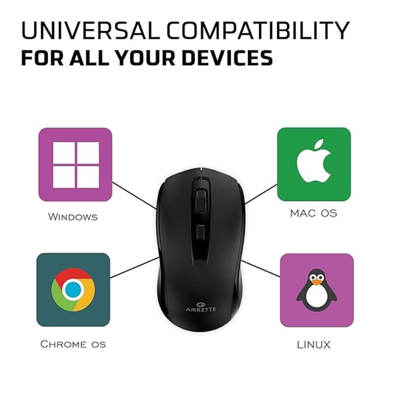 The Amkette Hush Pro Astra Wireless Mouse features an ergonomic design, silent switches, and high-precision 3-level DPI settings (800/1000/1200). With a 2.4GHz wireless USB nano receiver, it ensures smooth, lag-free performance. Lightweight and portable, it’s ideal for everyday use with laptops and PCs.