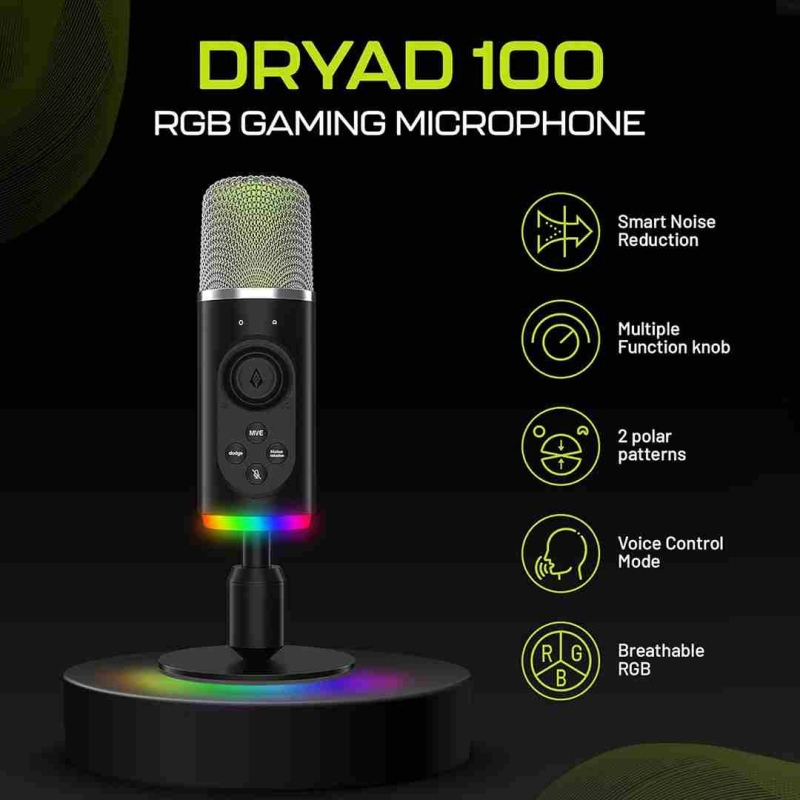 The Archer Tech Lab DRYAD100 USB Microphone is a versatile gaming and streaming microphone designed for clear, professional-quality audio. Featuring omnidirectional pickup, smart noise reduction, RGB lighting, and multiple voice modulation modes, it delivers immersive sound for gaming, podcasting, streaming, online meetings, and content creation. With plug-and-play USB connectivity, intuitive volume control, and a one-tap mute button, the DRYAD100 is ideal for gamers, streamers, and remote professionals seeking style and performance in one compact desktop microphone.