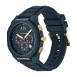 The Armani Exchange AX4168 is a bold and sporty 44mm men’s chronograph watch featuring a striking blue matte dial and a durable blue silicone strap. Designed for style and function, it offers a lightweight build with a nylon case, quartz movement, and water resistance up to 30 meters—ideal for everyday wear with a touch of athletic flair.