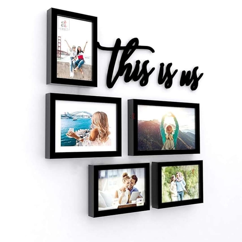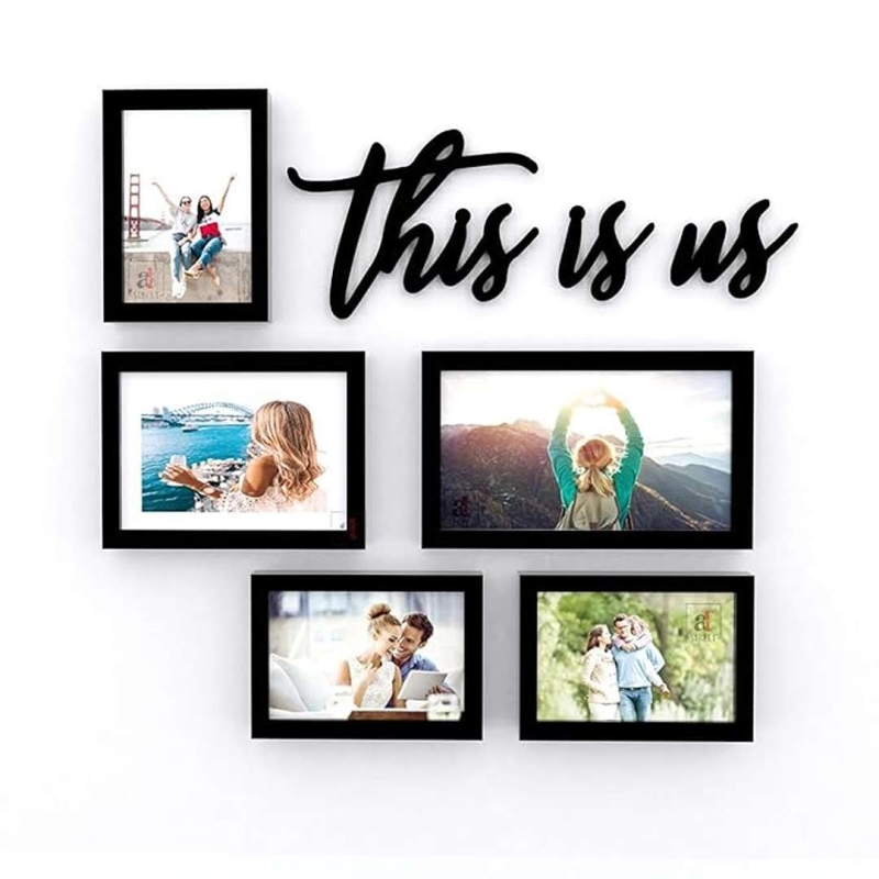The Art Street Valentine Theme Set of 5 Wall Photo Frames in black is a stylish gallery frame collection, ideal for showcasing cherished memories. Crafted from durable synthetic wood with unbreakable plexiglass and MDF backing, these frames come in mixed sizes (5x7, 6x8, 6x10 inches). Perfect for Valentine's Day or year-round home décor, they are wall or tabletop mountable and make a meaningful gift for loved ones.