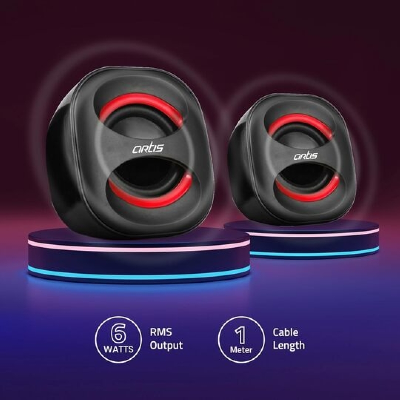 The Artis AR-Mini USB Speaker delivers clear stereo sound with enhanced low-frequency effects, powered conveniently through USB. Featuring 2×2.5W RMS drivers for a total of 6W RMS output (600W PMPO), this compact multimedia speaker is ideal for laptops, desktops, and smartphones. Built with durable virgin plastic, it includes wired volume control, Bluetooth capability, and a sleek tabletop design—perfect for everyday entertainment and workspace use.