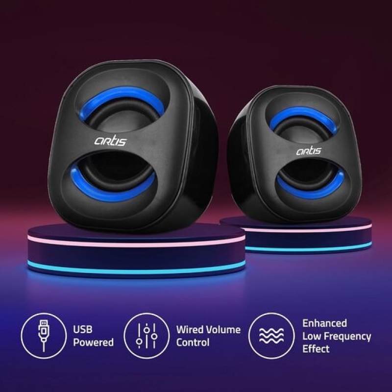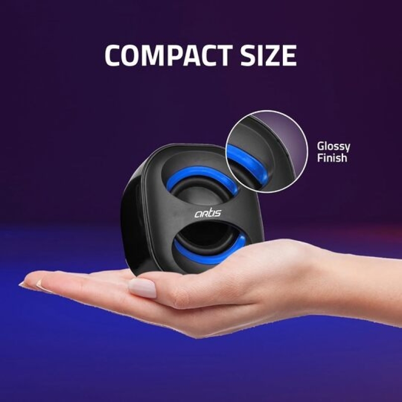 The Artis MINI 2.0 USB Multimedia Speaker is a compact, USB-powered stereo speaker system designed for laptops, desktops, and smartphones. With 6W RMS output and enhanced low-frequency effects, it delivers a clear and powerful audio experience for everyday use. It features a wired volume control, dynamic drivers, and a modern tabletop design, making it ideal for indoor multimedia listening.