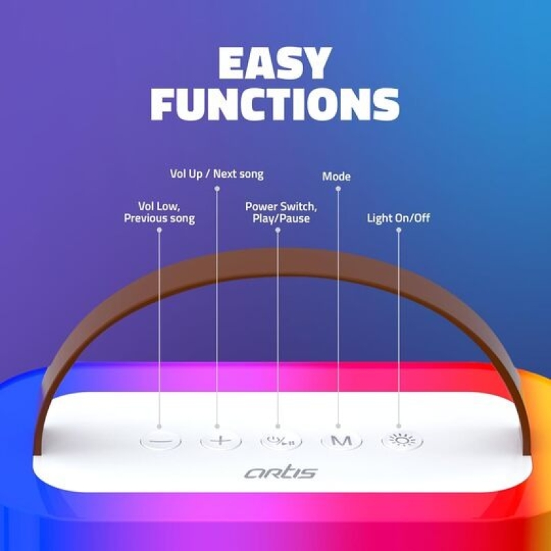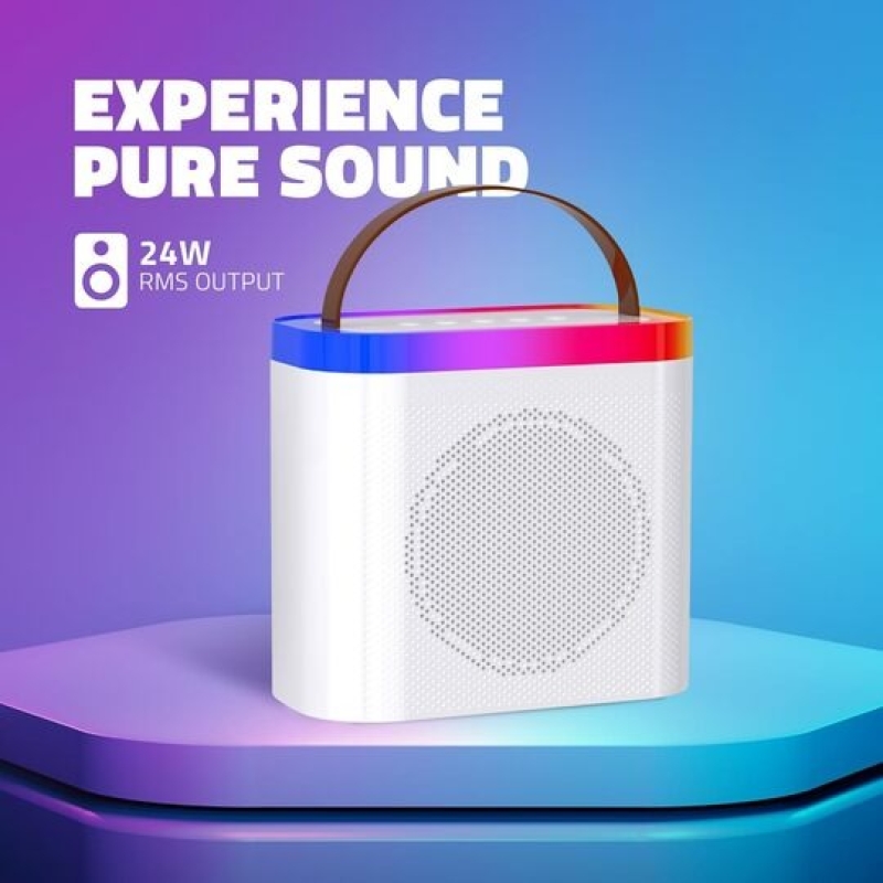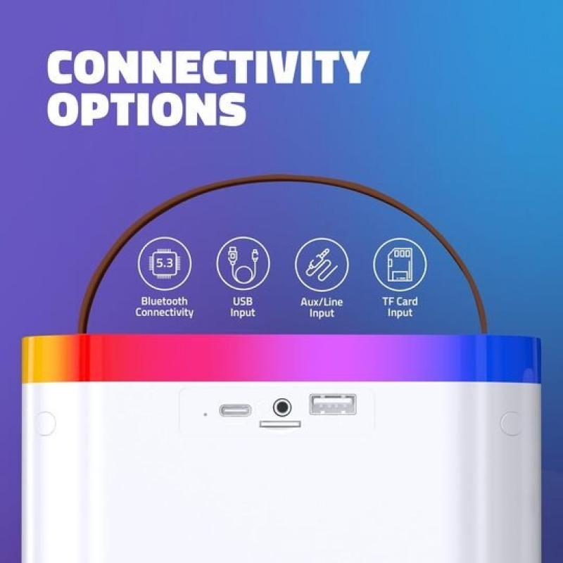 The Artis SoundMax 600 is a compact 24W wireless Bluetooth speaker designed for both indoor and outdoor use. It features multiple input options including Bluetooth, USB, AUX, TF card, FM radio, and a microphone input. With dynamic sound, RGB party lights, and a wireless mic offering fun voice effects (KTV, professional, loli, monster), it’s perfect for entertainment and karaoke. Powered by a 2400mAh rechargeable battery, it delivers up to 5–6 hours of playback with a quick 2-hour charge time.