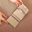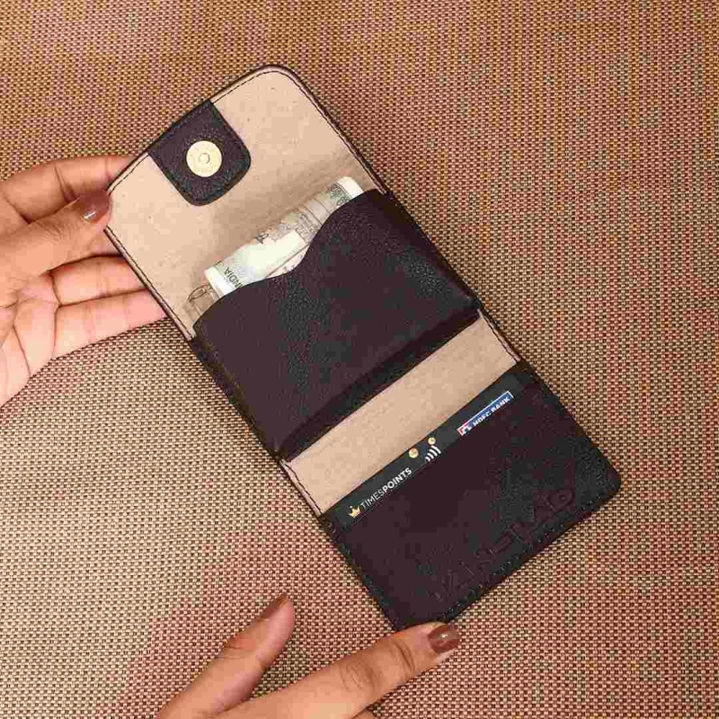 Crafted in gorgeous leather, it has two single card slots, perfect for your daily cards, and a spacious main compartment to store cash, coins, or small knick-knacks. Its sleek, minimalist design makes it ideal for everyday use, whether tucked into your pocket or slipped into your bag.