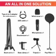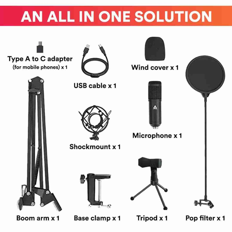 | Included Components | Condenser Microphone, Metal Shock Mount, Adjustable Boom Arm Stand, Pop Filter, Foam Mic Cover, Tripod, 2.5m USB A to B Cable, USB Type-A to Type-C Connector, 4 Zip Ties | |
