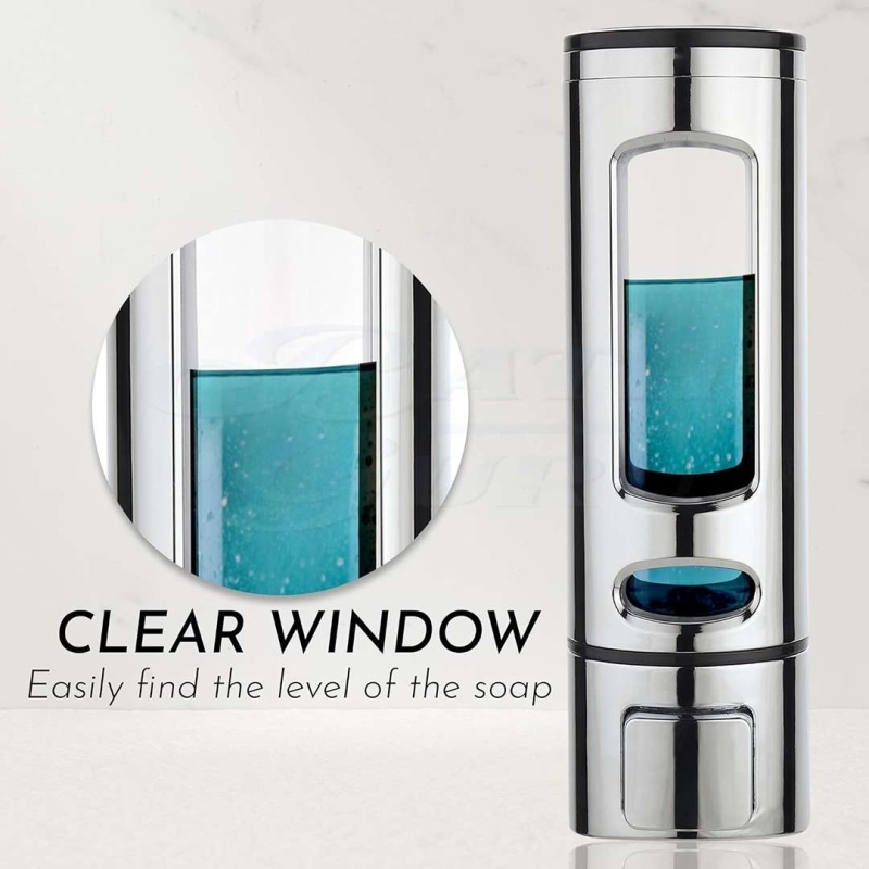 The BATH GURU Wall-Mounted Liquid Soap Dispenser (Chrome Finish – Pack of 3) features a sleek chrome-plated ABS plastic body with a 400 ml capacity. Designed with a lockable, dust-protected cover and wall-mount installation, it is ideal for hygienic and organized dispensing of soap, shampoo, sanitizer, or shower gel in homes and commercial spaces.