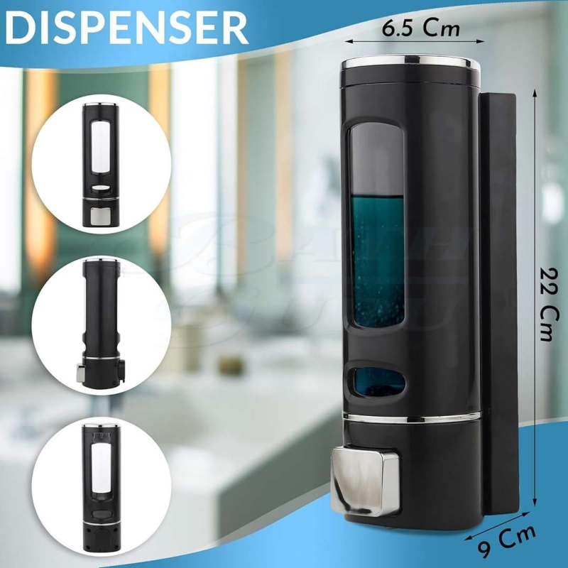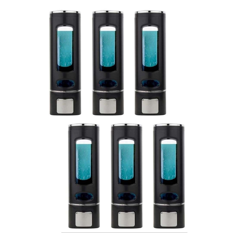 The BATH GURU Wall-Mounted Liquid Soap Dispenser (Set of 6) features a modern black cylindrical design made from durable ABS plastic. Each dispenser offers a 400 ml capacity with a lockable, dust-protected cover and wall-mount installation, making it ideal for hygienic, organized use in homes, offices, schools, institutes, and commercial spaces.