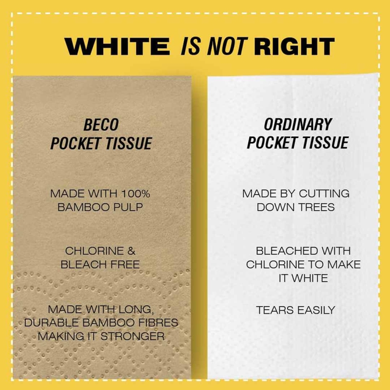 Beco’s eco-friendly bamboo pocket tissues are unbleached, soft, super-absorbent, and durable, making them perfect for travel and everyday use. Made from 100% bamboo pulp, they are biodegradable, skin-safe, and a sustainable alternative to traditional tissues.