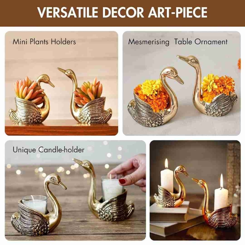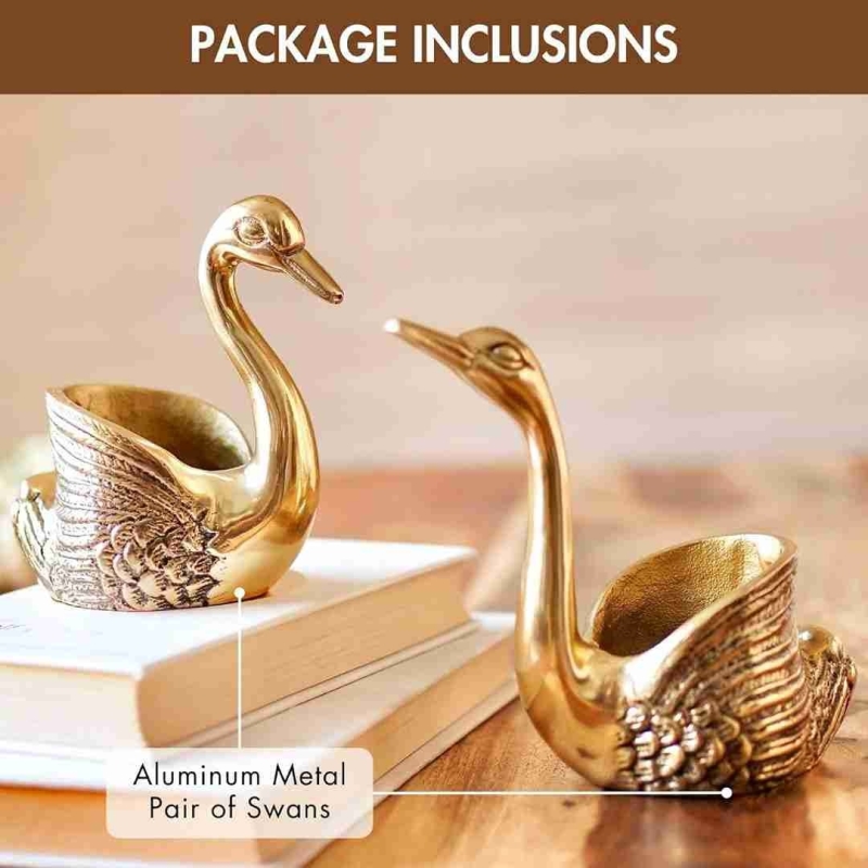 | Package Content | Two Golden Metal Loving Swan Couple Showpieces |