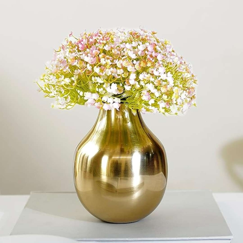 This handcrafted BEHOMA golden metal vase features a sleek round bud-shaped design, offering a sophisticated touch to any décor. Made from high-quality iron with a protective base pad, it is perfect for showcasing real or faux flowers. Its elegant, modern look makes it ideal for home styling and gifting on festive or special occasions.