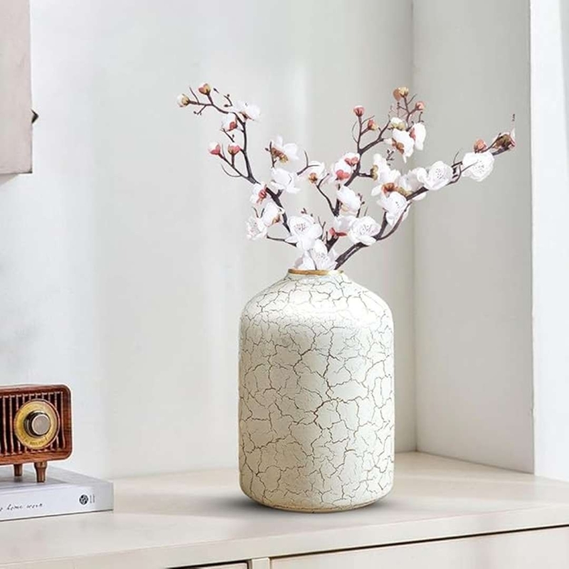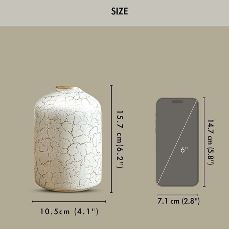 This handcrafted BEHOMA metal vase features a crackled white finish, offering a stylish and elegant accent for any room. Made from high-quality iron with a scratch-preventing base pad, it is perfect for displaying real or faux flowers. Ideal for home décor, gifting, and festive decoration, this durable vase adds a modern and sophisticated touch to any space.