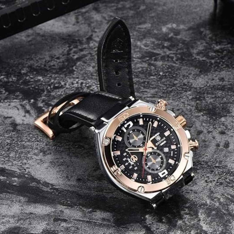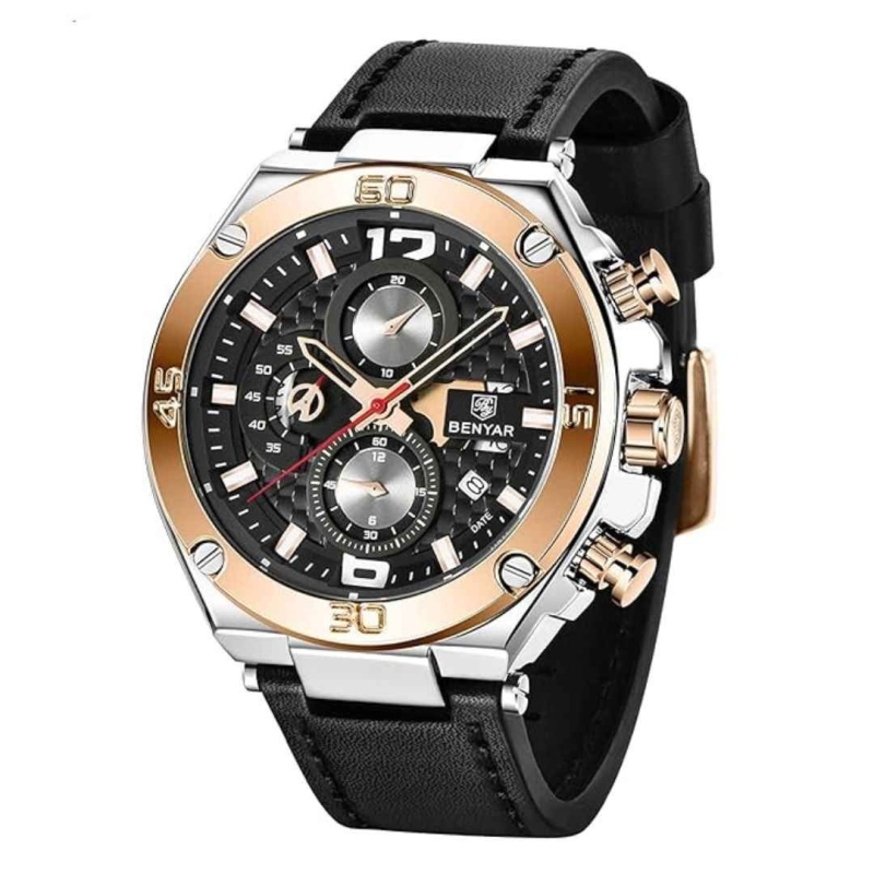 The Benyar Ben-5151-1 Chronograph Men's Watch is a fusion of rugged sportiness and classic dress style. With a 45mm case, blue leather strap, and dual display (analog + digital), it’s built for both precision and performance. Whether you're swimming, at work, or heading out for a casual day, this multi-functional, shock-resistant timepiece offers excellent value and versatile style.