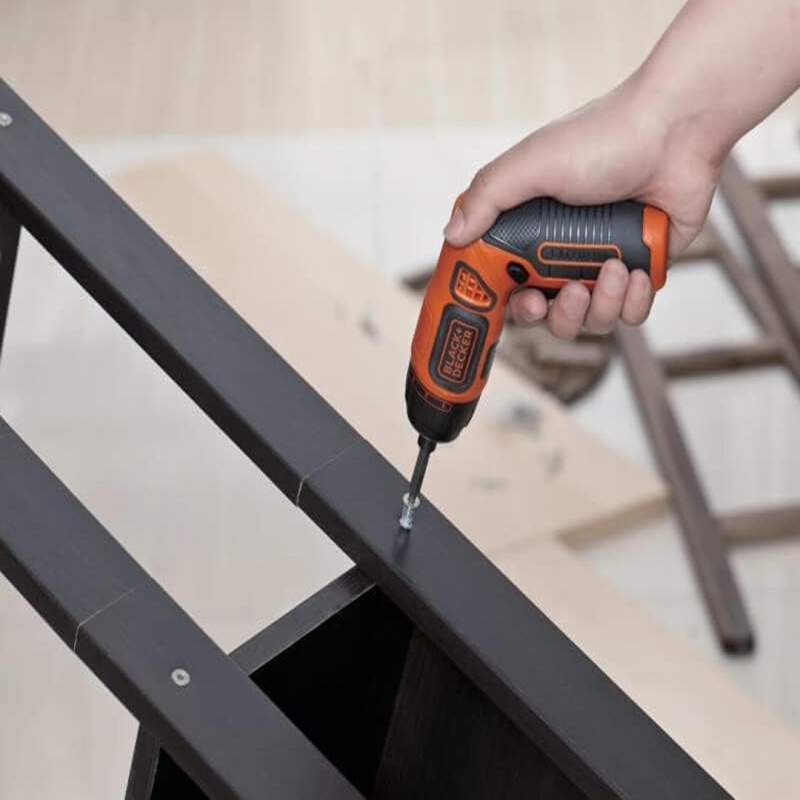 The BLACK+DECKER BDCS36F-IN is a compact 3.6V cordless screwdriver designed for home and light professional use. Featuring forward/reverse operation, 7 torque settings, a dual-position handle, and an LED work light, it ensures comfortable, precise screwdriving in tight or low-light spaces. The kit includes multiple screwdriver bits for versatile applications.
