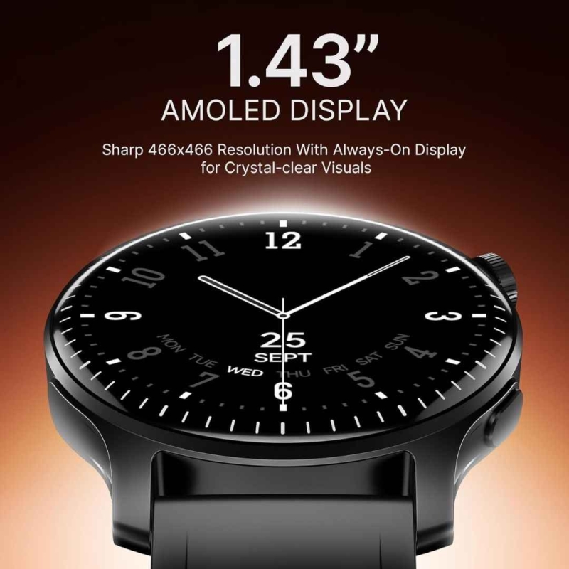 Experience premium design, powerful functionality, and all-day health tracking with the boAt Ultima Prime AMOLED Smartwatch. Equipped with a vibrant 1.43” AMOLED Always-On display, Bluetooth calling, Emergency SOS alerts, 100+ sports modes, and advanced heart rate & SpO₂ monitoring, this smartwatch is built to keep you connected and protected. Personalize your look with customizable watch faces and enjoy seamless control with music & camera shortcuts, all powered by the boAt Crest App.