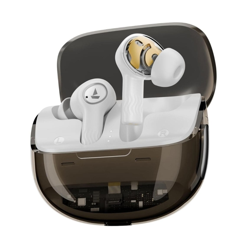 The boAt Nirvana Crystl (2025 Launch) is a premium True Wireless Earbud offering featuring 32dB Active Noise Cancellation, boAt 360º Spatial Audio, and 100 hours of battery life. It supports quad-mic ENx technology for crystal-clear calls, is compatible with the boAt Hearables App for customization, and comes with a sleek transparent case. Ideal for gaming, travel, and immersive audio experiences.