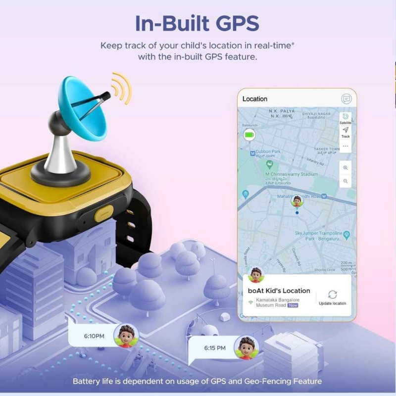 | Special Features | 4G/Wi-Fi Connectivity, IP68 Splash, Sweat & Dust Resistance, Parental Control, SOS Feature, Step Tracking, Geo Fencing, 2MP Camera |