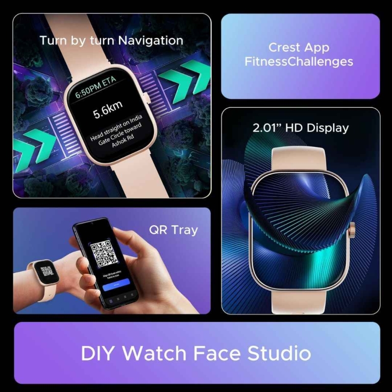 | Special Features | Turn-by-Turn Navigation, Emergency SOS, QR Code Hub, 700+ Active Modes, Watch Face Studio, Coins, Built-in Games, Live Sports Scores, Music/Volume Control |