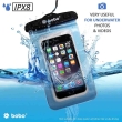 The BOBO Universal Waterproof Mobile Pouch is an IPX8-certified, touch-friendly phone case designed to protect your smartphone from water, sand, snow, and dirt up to 100 feet underwater. Made from non-toxic TPU and plastic, it fits most smartphones and is ideal for beach trips, swimming, diving, and water park activities, while also working as a dry wallet for essentials.