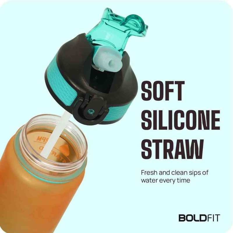 The Boldfit Motivational Ombre Orange Green 1L Water Bottle is designed to inspire daily hydration with time markers and motivational quotes. Made from BPA-free, food-grade plastic, it ensures safe drinking while being lightweight and durable. The flip-top lid with secure lock makes the bottle fully leak-proof and dustproof, ideal for gym workouts, office, school, and outdoor activities. Its wide mouth allows easy cleaning and ice insertion, and the sturdy carry strap ensures convenient portability. A stylish and functional water bottle perfect for fitness and lifestyle needs.
