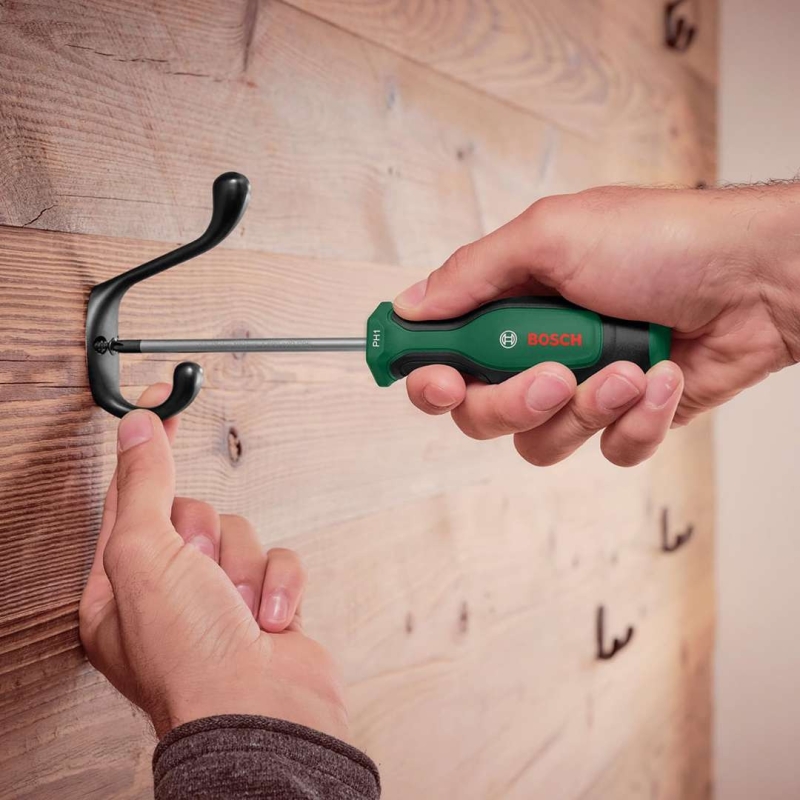 The Bosch 6-Piece Screwdriver Set is a versatile and durable tool kit designed for furniture assembly, woodworking, electrical tasks, and everyday household maintenance. Built with high-strength, heat-treated steel tips and ergonomic soft-grip handles, this set ensures comfort, precision, and long-lasting performance. Magnetic tips provide secure screw handling, even in tight spaces.