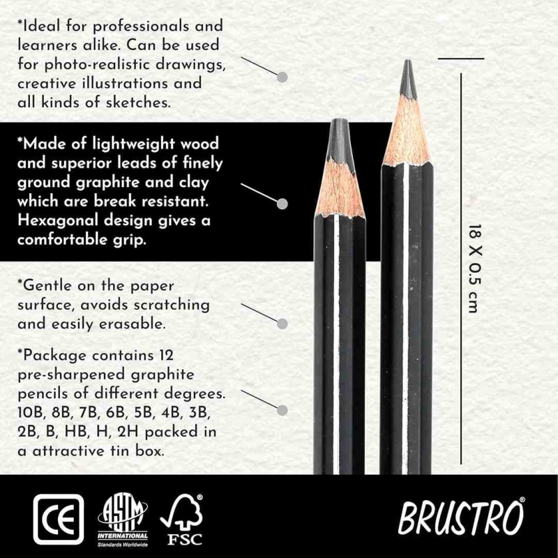 The BRUSTRO Graphite Pencil Set is a versatile choice for students, hobbyists, and professional artists. Featuring five grades of softness (2B–10B), these pencils deliver smooth, dark, and precise strokes for shading, sketching, and detailed artwork. Pre-sharpened and break-resistant, they are ready to use straight out of the box.
