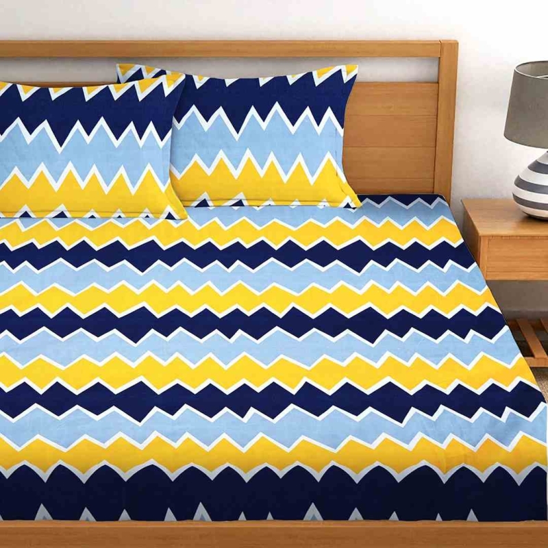 The BSB HOME Double Bedsheet Set is a soft and breathable microfibre bedding set designed with a stylish yellow & blue zig-zag pattern. With a 160 thread count, modern look, and machine-washable fabric, it offers comfort and durability for everyday use. The set includes one double flat bedsheet and two pillow covers, making it ideal for adult bedrooms and gifting occasions like housewarming.