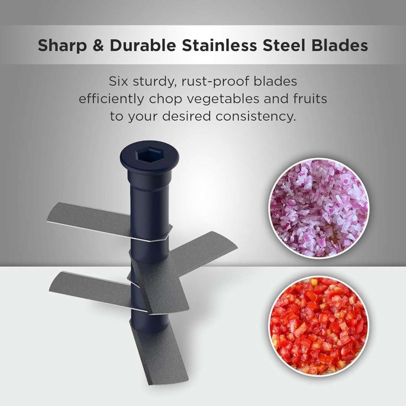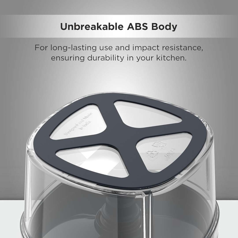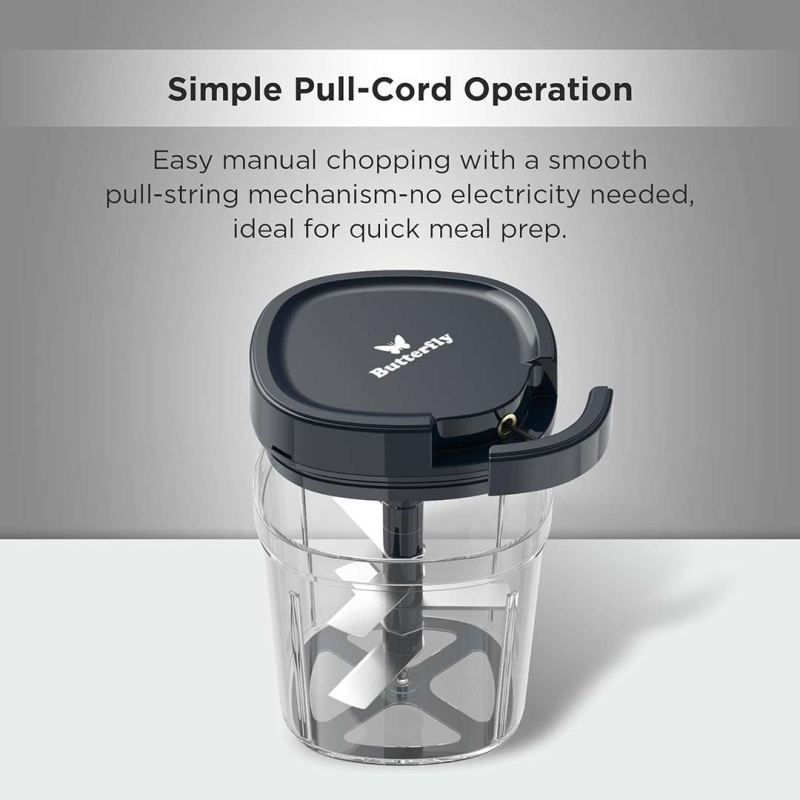 The Butterfly Premium Vegetable Chopper (900 ml) is a manual, string-operated chopper designed for quick and effortless chopping of vegetables and fruits. Built with durable unbreakable ABS plastic and equipped with a sturdy 3-blade stainless steel mechanism, it ensures fast and uniform chopping. Its compact, eco-friendly design and dishwasher-safe body make it a reliable and convenient addition to any kitchen.