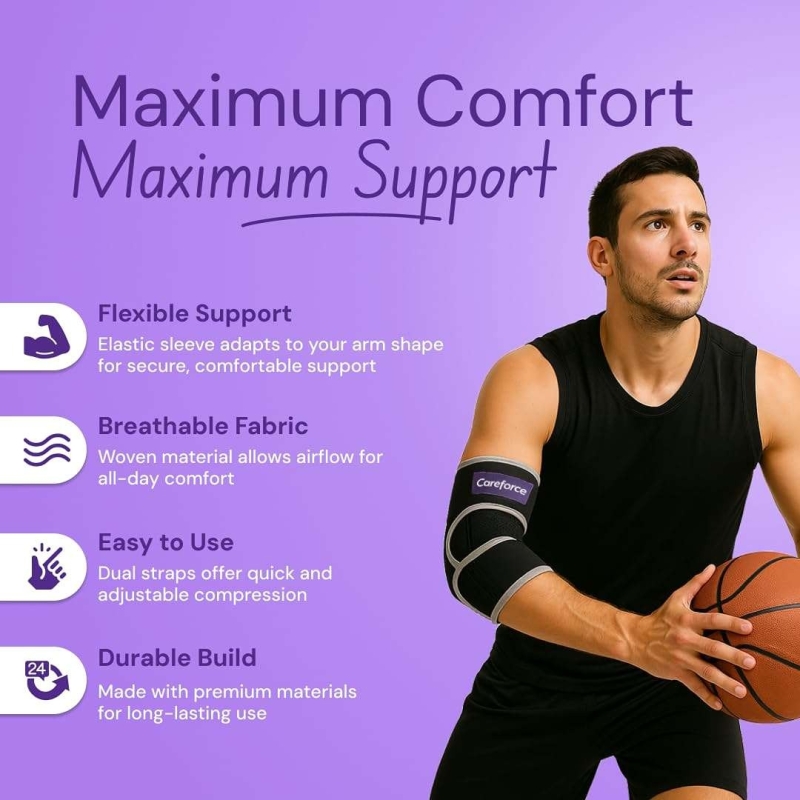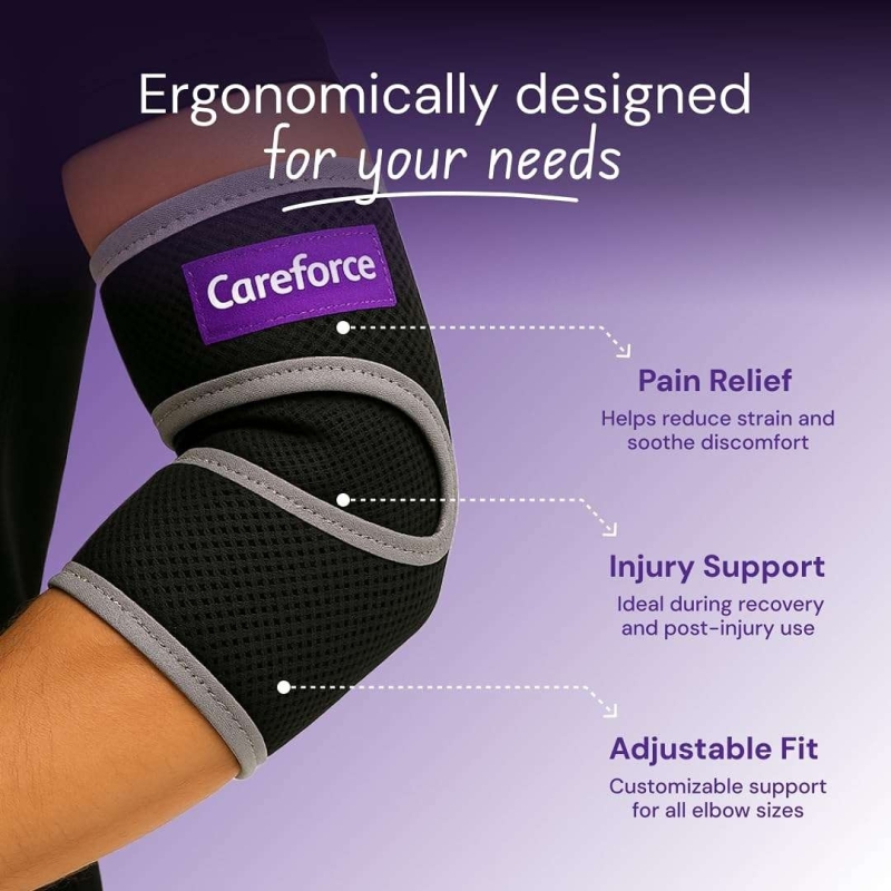The Careforce Elbow Support offers firm compression, adjustable fitting, and breathable comfort for everyday activities and sports. Designed with neoprene, moisture-wicking lining, and strong hook-and-loop straps, it delivers optimal support, pain relief, and stability for tennis elbow, gym workouts, and forearm strain. Lightweight, skin-friendly, and versatile—ideal for all-day wear.
