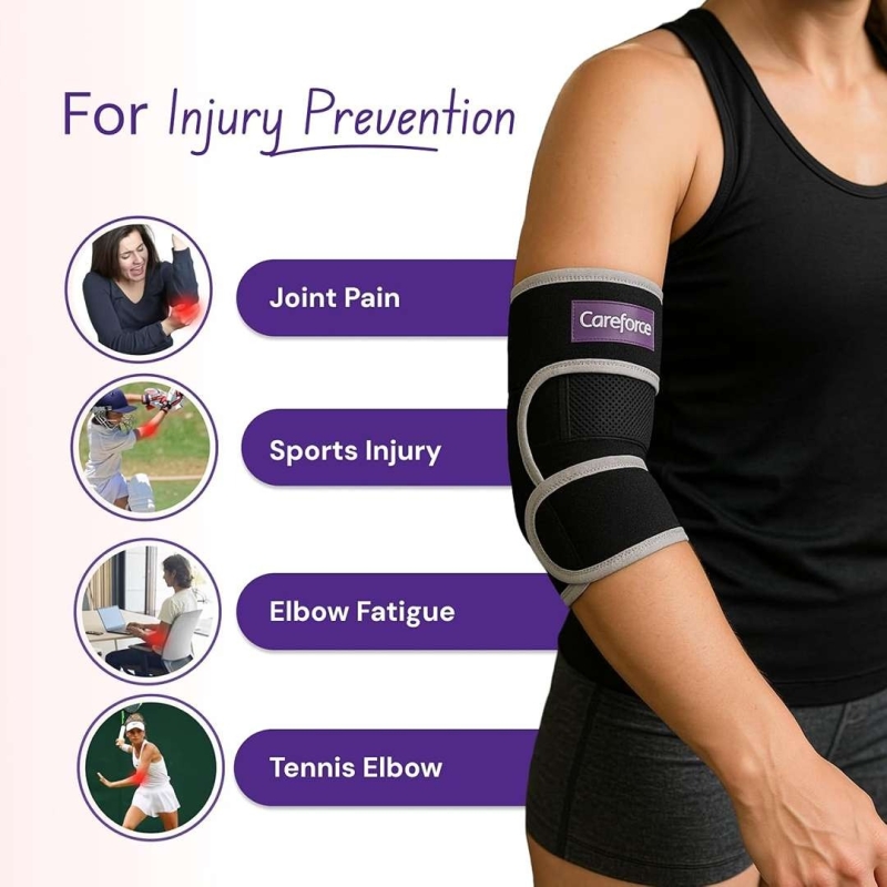 The Careforce Elbow Support (Model CFES001) provides adjustable compression and firm support for the elbow using a breathable neoprene wrap with secure hook-and-loop straps. Designed for comfort, stability, and all-day wear, it is ideal for sports, fitness activities, and relief from strain or elbow discomfort.