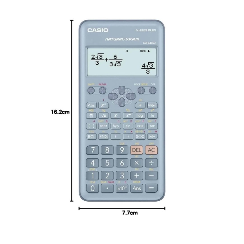 The Casio FX-82ES Plus Blue 2nd Gen is a sleek and compact non-programmable scientific calculator with 252 functions. Designed with a Natural Textbook Display, it supports permutations, combinations, regression analysis, and table functions—ideal for students and professionals. It features a durable plastic body and comes with a slide-on hard case.