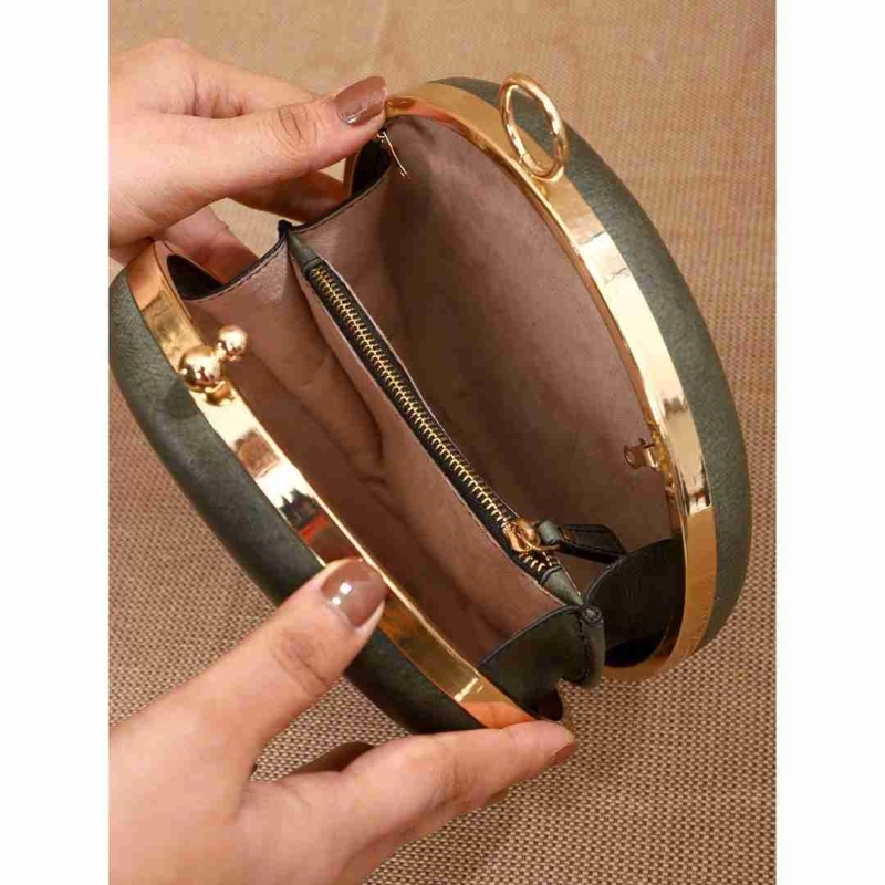 Say hello to our Circle Clutch, an elegant accessory inspired by the timeless circular shape, designed to complement your look for both casual day outs and glamorous evening events. The standout feature of this clutch is the ring clasp closure, which not only adds a unique design element but also doubles as a chic holder, offering both style and function.