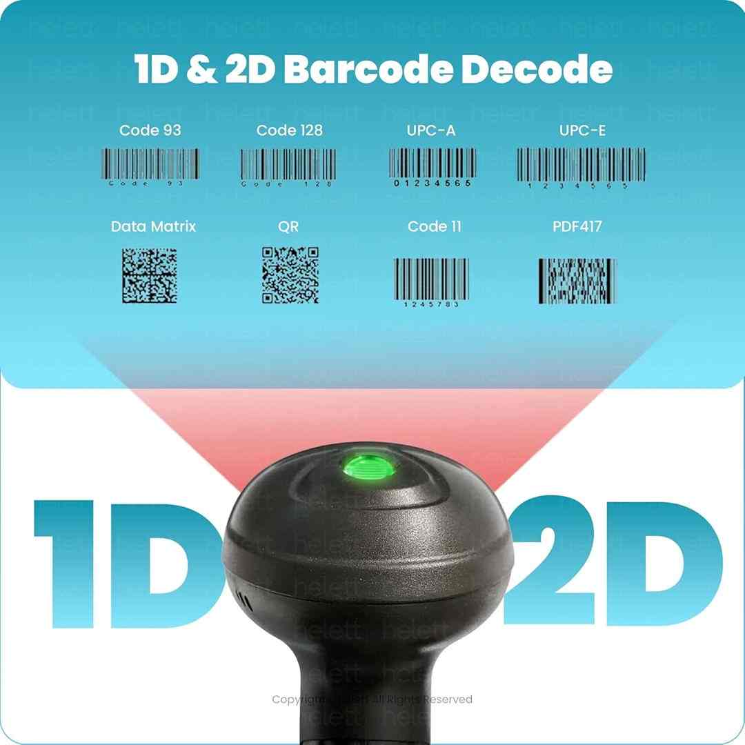 The Helett HT410 is a high-performance handheld 2D barcode scanner designed for fast and accurate barcode reading across various environments such as retail, warehousing, healthcare, and payment systems. With plug-and-play USB connectivity, it supports both 1D and 2D barcodes, scanning from paper and digital screens alike. It requires no additional software, making it compatible with Windows, Linux, and iOS systems.