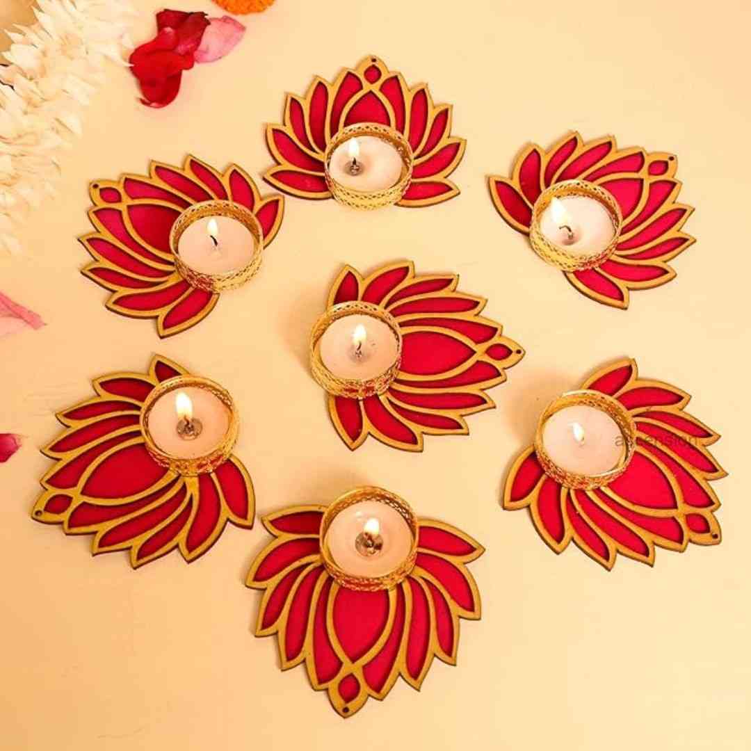 Ascension Decorative Lotus Tealight Candle Holder Stand Set of 7