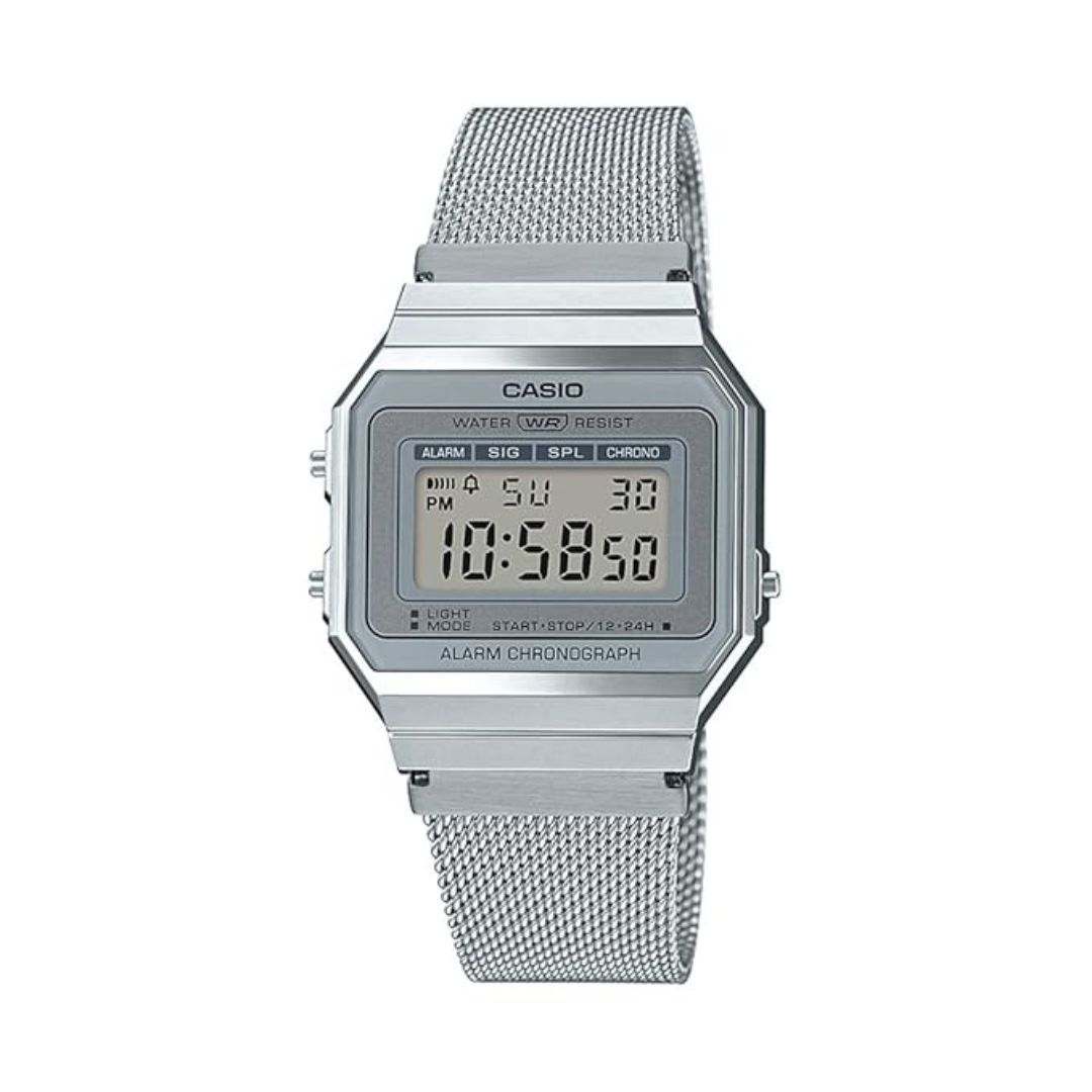 Casio Vintage A700WM-7ADF Digital Grey Dial Unisex Watch Silver Metal Strap