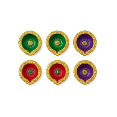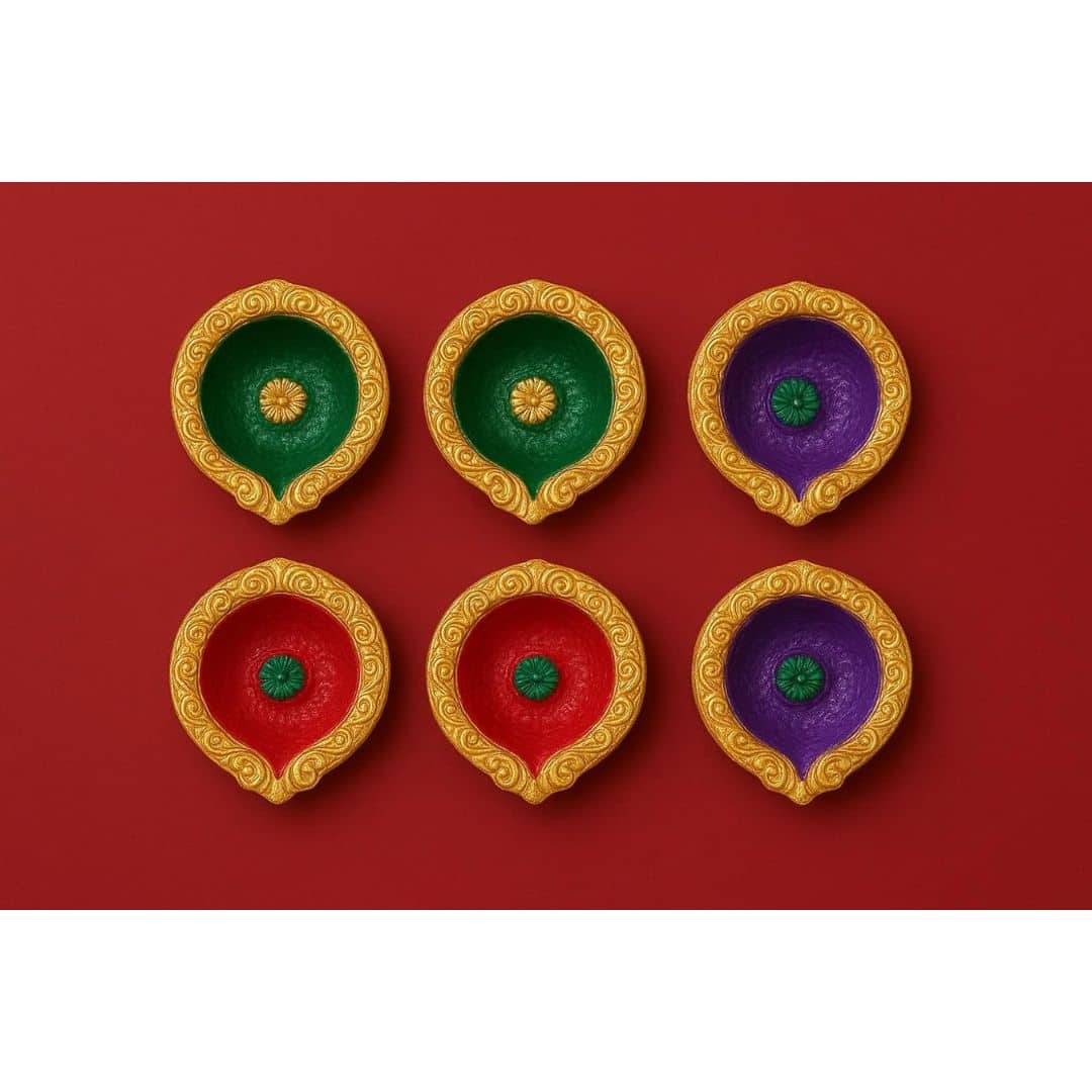 6 Designer Diya for Diwali and Festivals Decorative Diyas for Diwali Decoration Items Set of 6 (2 Green 2 Red 2 Purple) pack of 2