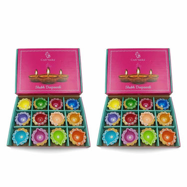 Enhance your festive décor with the CraftVatika Decorative Clay Diyas (Pack of 2, 24 Pieces). Made from eco-friendly clay and powered by vegetable oil, these traditional diyas bring warmth and elegance to your celebrations. Lightweight, durable, and beautifully crafted, they are ideal for Diwali, puja rituals, and festive decorations. A perfect blend of tradition and artistry from CraftVatika, Jaipur, India.