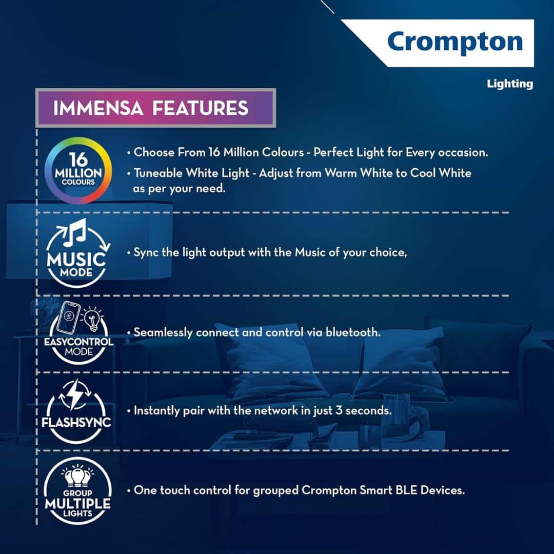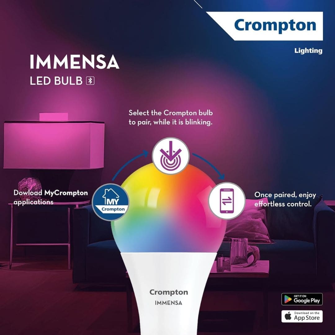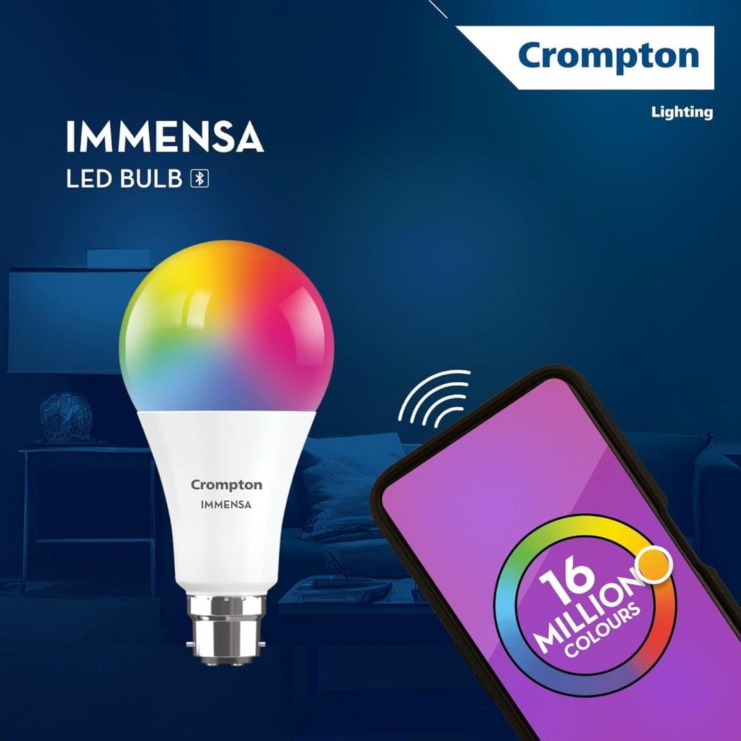 Crompton Immensa 9W Bluetooth Enabled Smart Bulb B22 | 16 million Colours | White Tunable (Warm, Neutral & Cool White) & Dimmable | App-Control |Music Sync|Perfect light for all occasions|Pack of 1