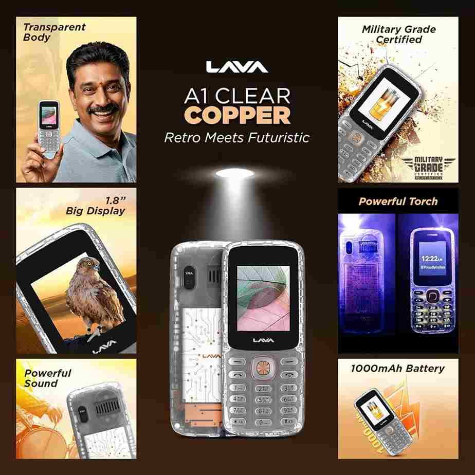 The Lava A1 Clear Copper is a sleek and durable basic keypad mobile phone featuring Smart AI Battery technology for extended usage. Its compact design, dual SIM support, and expandable storage make it an ideal companion for daily communication and essential mobile functions.