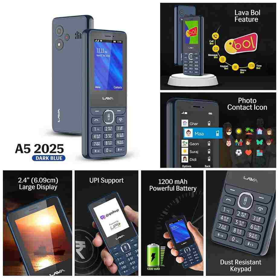 The Lava A5 is a reliable and feature-packed keypad phone built for convenience and everyday performance. It comes with a 2.4-inch bright display, powerful 1200mAh battery, UPI support, and BOL keypad that speaks when you press any key — making it ideal for seniors and users who prefer accessibility and long-lasting reliability.