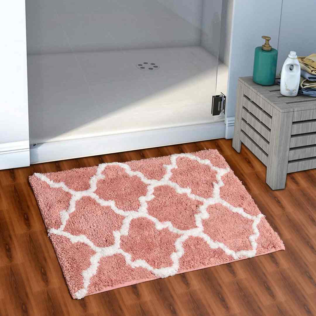 AEROHAVEN Glorious Microfiber Abstract Moroccan Designer Bathmat (Peach) pack of2