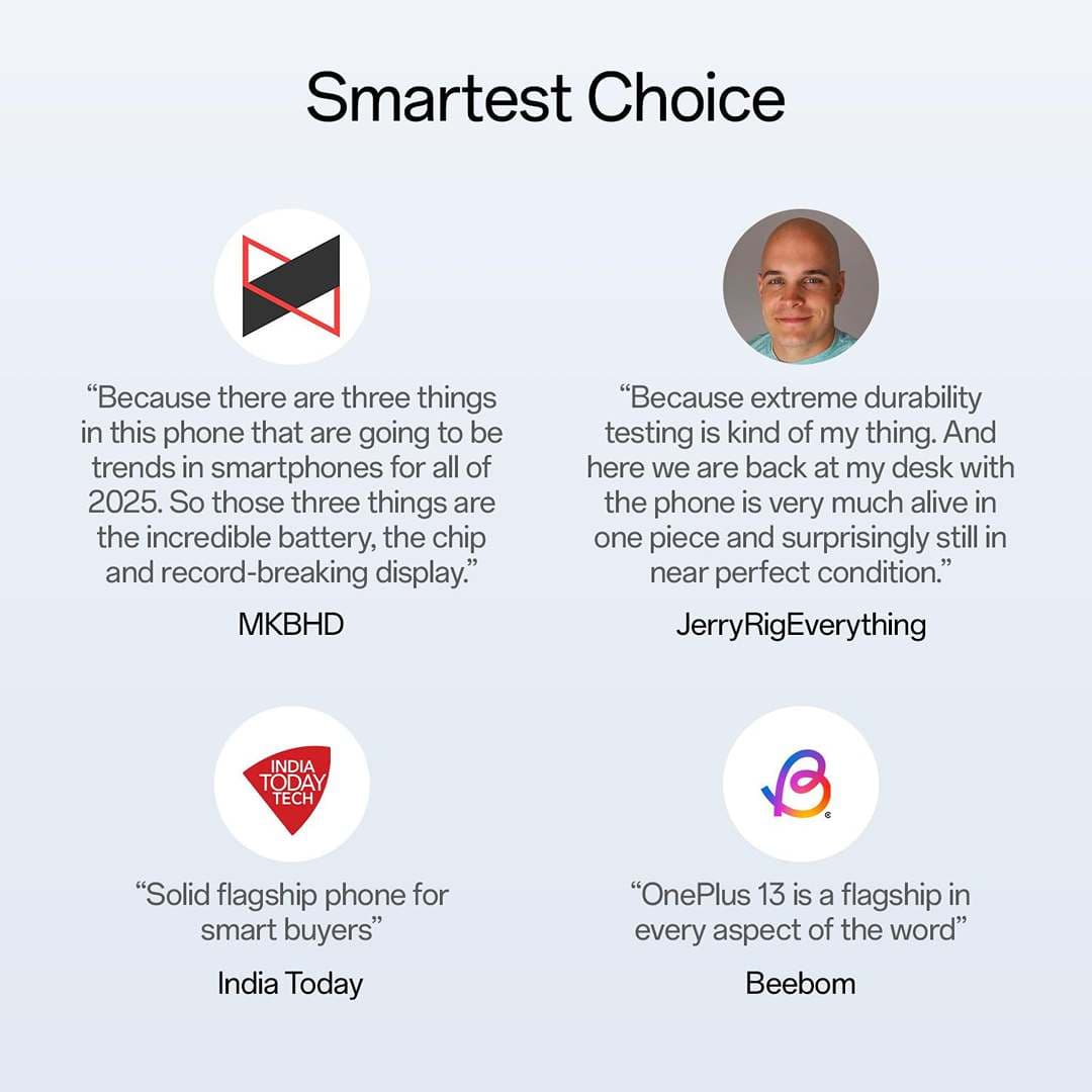 The OnePlus 13 combines flagship power and elegant durability with the Snapdragon 8 Elite Mobile Platform, OxygenOS 15, and OnePlus AI. It features a stunning 2K ProXDR Display, a versatile 50MP triple Hasselblad camera, and a massive 6000mAh Silicon NanoStack battery with 100W wired and 50W wireless fast charging. Built for power, style, and endurance, it carries IP69/IP68 water and dust resistance and delivers next-level performance and creativity.