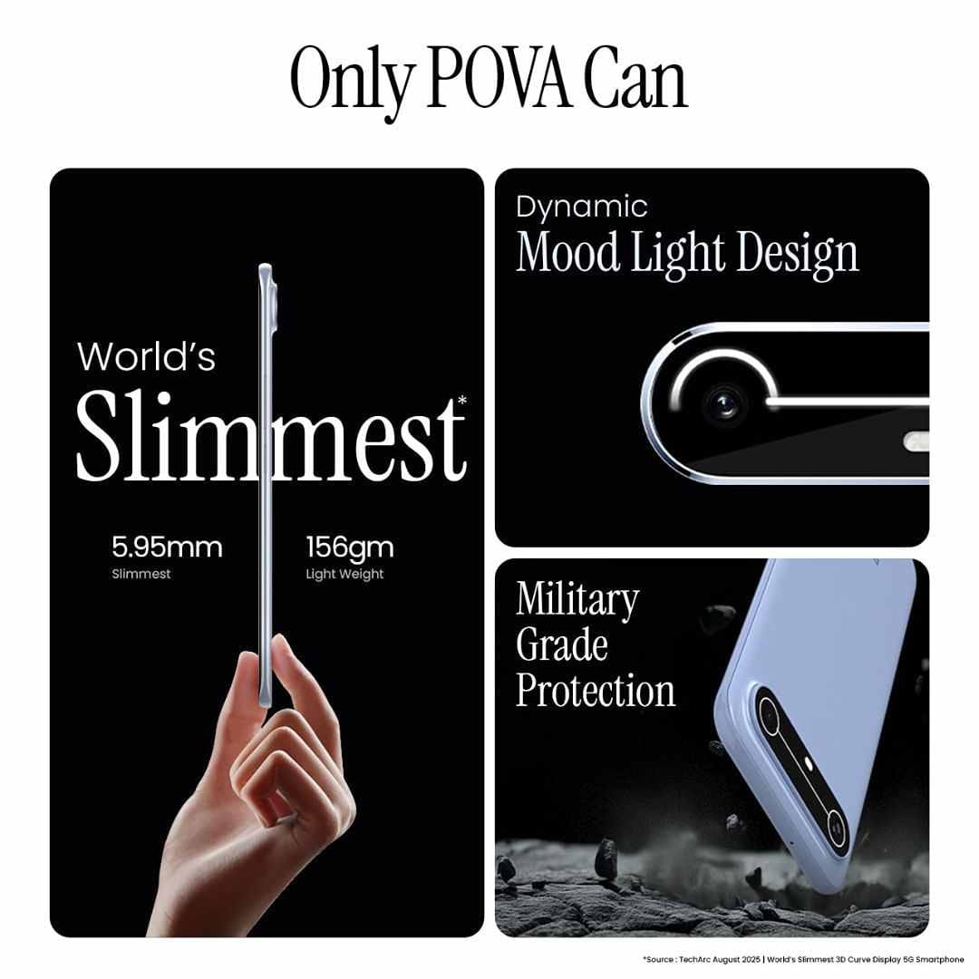 Pova Slim 5G (Sky Blue, 8+128GB) World's Slimmest and Lightest* 5G with 5160mAh Battery