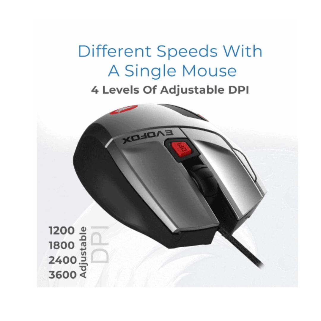 The EvoFox Shade Gaming Mouse is a sleek, ergonomic, and portable device designed to enhance your gaming experience. Featuring a 7-color light mode system, this gaming mouse delivers both visual appeal and precision. It is equipped with long-lasting Huano switches, tested for up to 10 million clicks, and has four DPI settings (1200, 1800, 2400, 3600) for high accuracy. The mouse has a metallic finish for an upgraded gaming feel and is compact enough to fit easily into a backpack. It is USB-powered and compatible with PC, Mac, and Linux. The EvoFox Shade Gaming Mouse also comes with a 1-year manufacturing warranty for peace of mind.