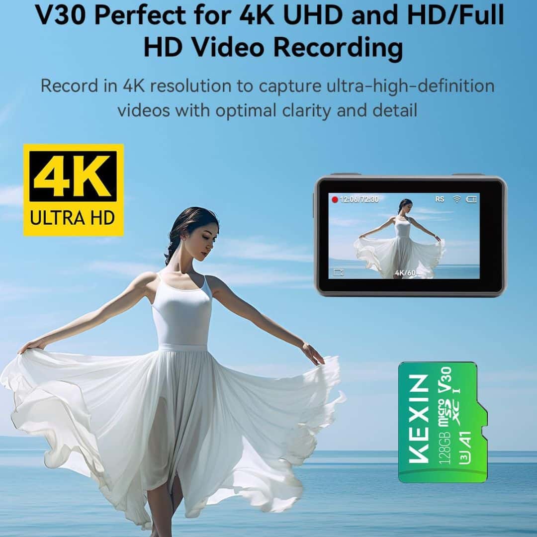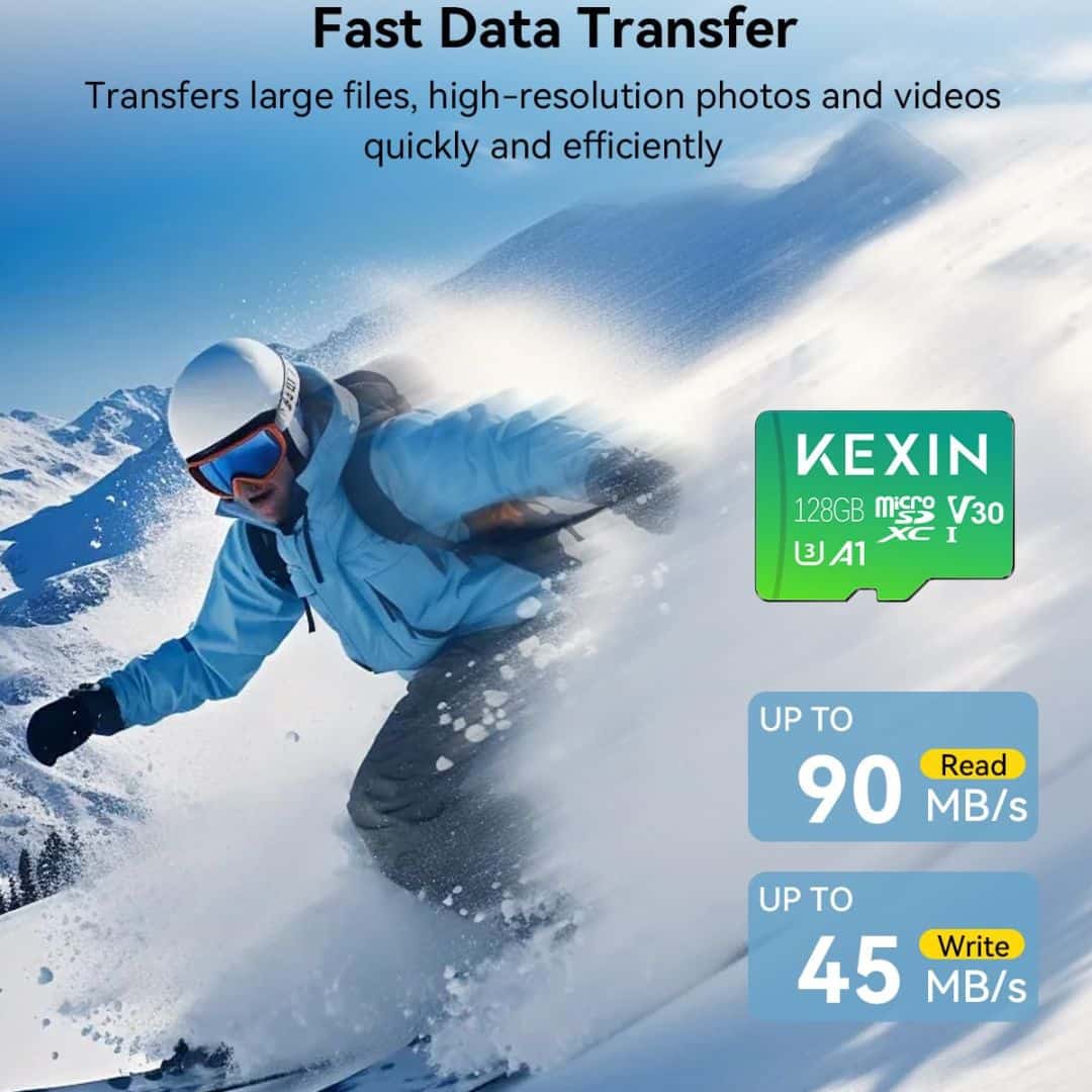 KEXIN 128GB Micro SD Card with SD Adapter, 85MB/s Read 30MB/s Write, 4K UHD High Speed TF Card
