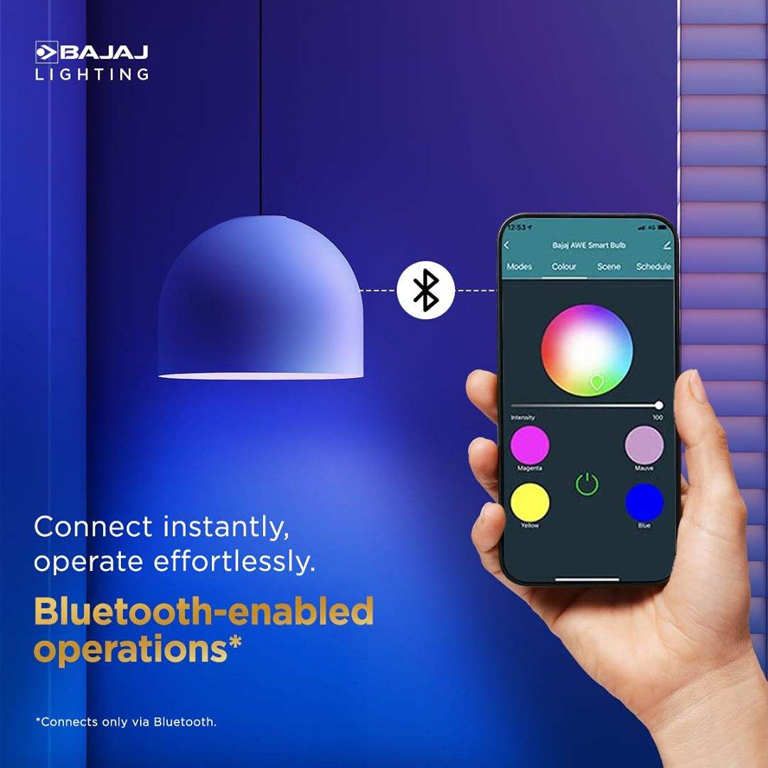 Bajaj 9W Wifi Smart LED Bulb |Bluetooth enabled B22D |16 million colors |4 Star Rated | Energy Efficient | Long Life & 240 Volts | 1 Year - Warranty (Pack Of 1 & Multicolour)